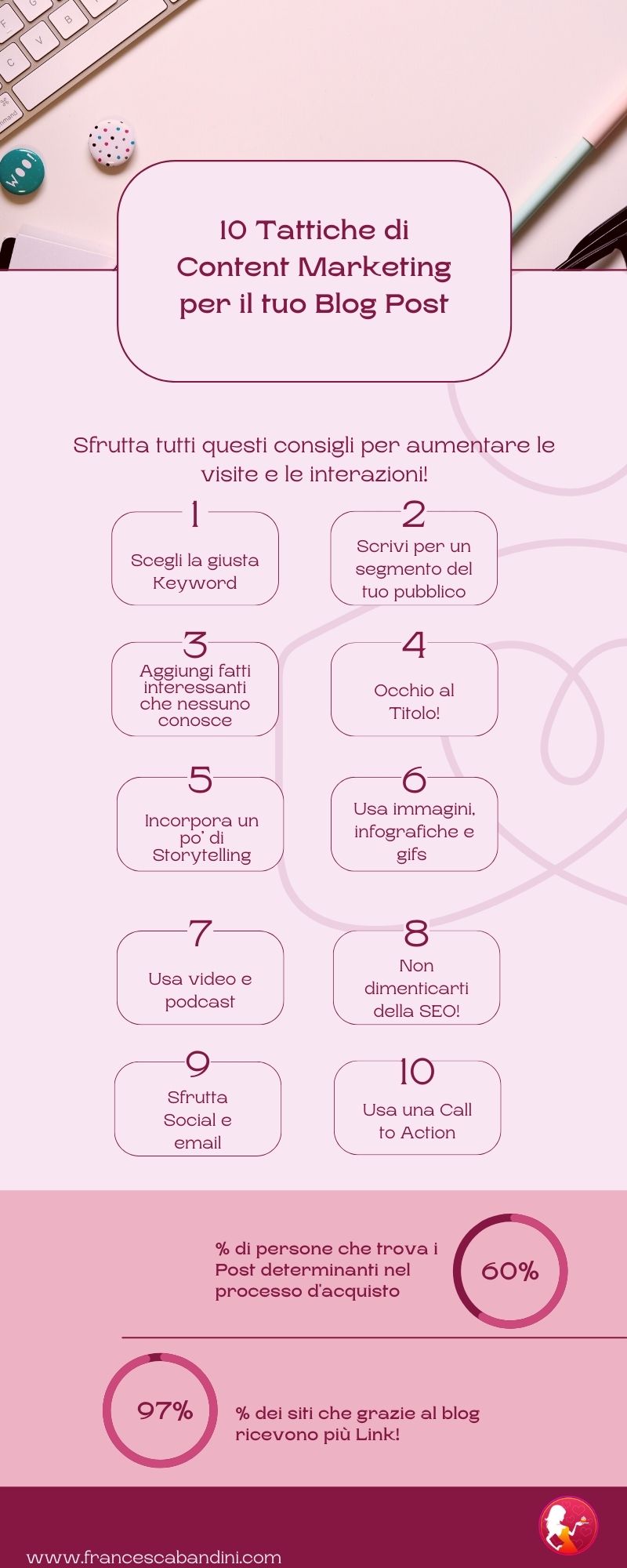 Ecco, il mio post ti propone alcune tattiche di content marketing applicabili alla strategia del tuo blog.